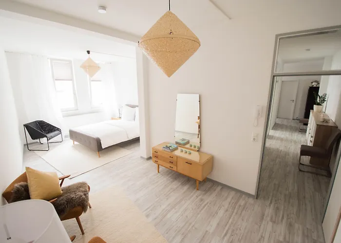 Dieses Apartment bietet eine Küche an, die für den Komfort der Gäste die Wasserkocher, die Kühlschränke und die Herde bereitstellt. Verschiedene Speisemöglichkeiten, darunter ACC und Cafe Wunsch Dir Was, sind ungefähr 150 Meter entfernt. Die Bushaltestelle Goetheplatz ist ein paar Minute entfernt von dem 117 m^2 großen Apartment Altstadt Suite.